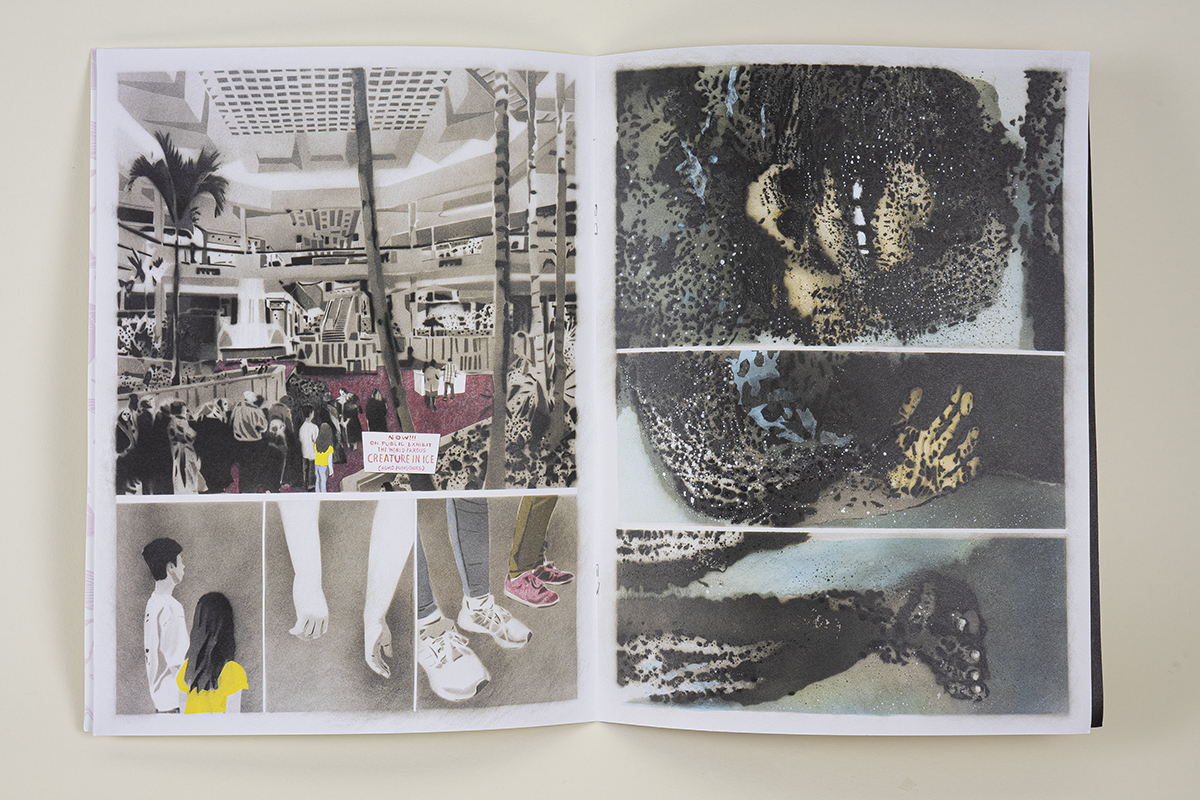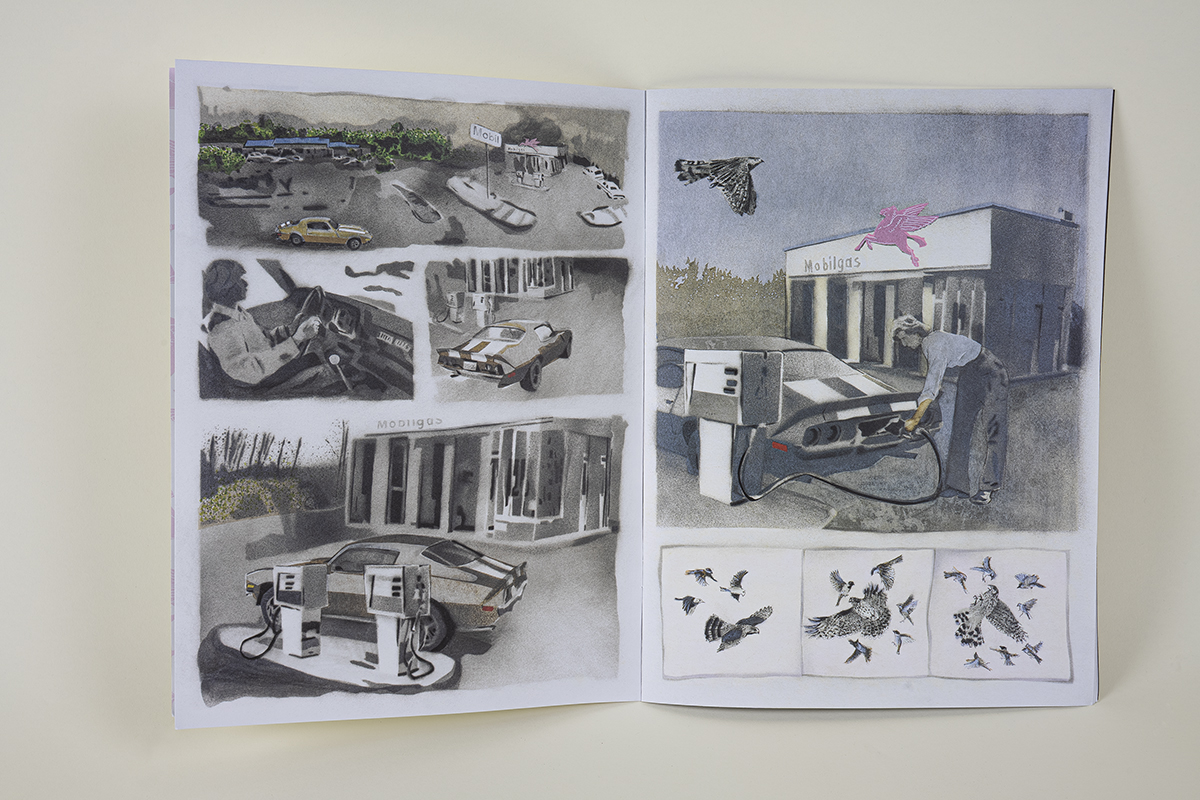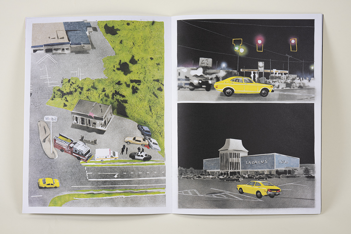 This comic presents a visual narrative surveying two of the artist’s formative exposures to mortality: a parable involving a deadly muscle car in Connecticut and an encounter with a frozen biped in an Ohio Mall. The project was inspired by Starr reaching the age at which his sister passed away from cancer. Grounded in the premise of palliative care, this work reflects on how facing mortality can help deepen appreciation of life’s transience.