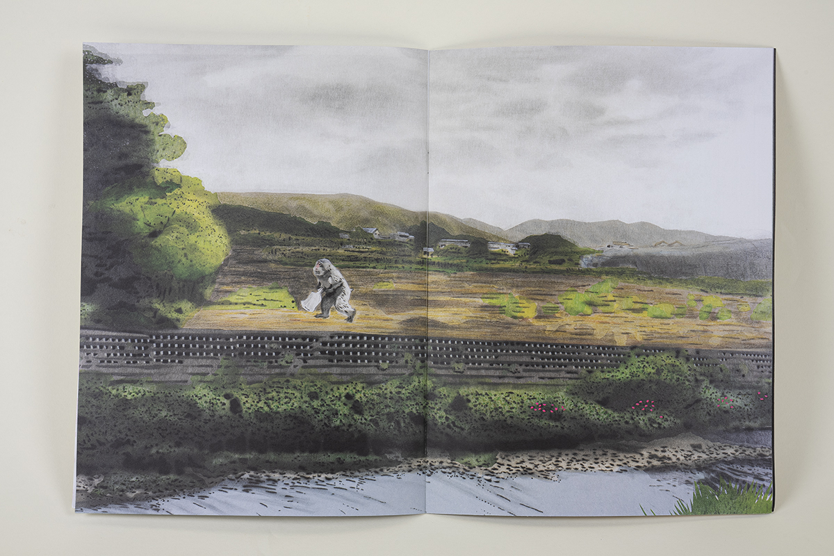 Starr approaches this subject with subtle humor and dramatic visuals created with spray paint, ink, and layered gampi paper—an approach developed during his years researching woodblock printing in Japan. This volume is the first in a series on mortality emanating from Starr’s previous works that visualize FBI cases to create informative and immersive studies on white nationalist violence. Here, based on his humble experiences, he examines how individuals face the end of life, offering a theatrical reflection on this fundamental aspect of being human.