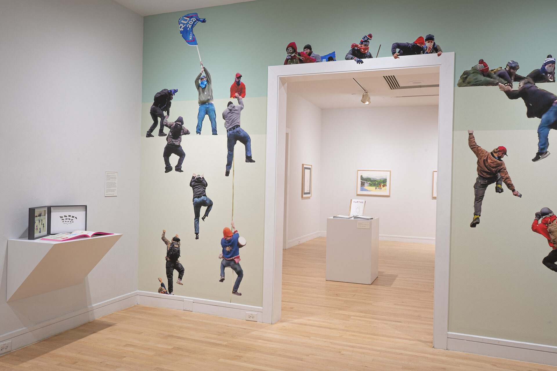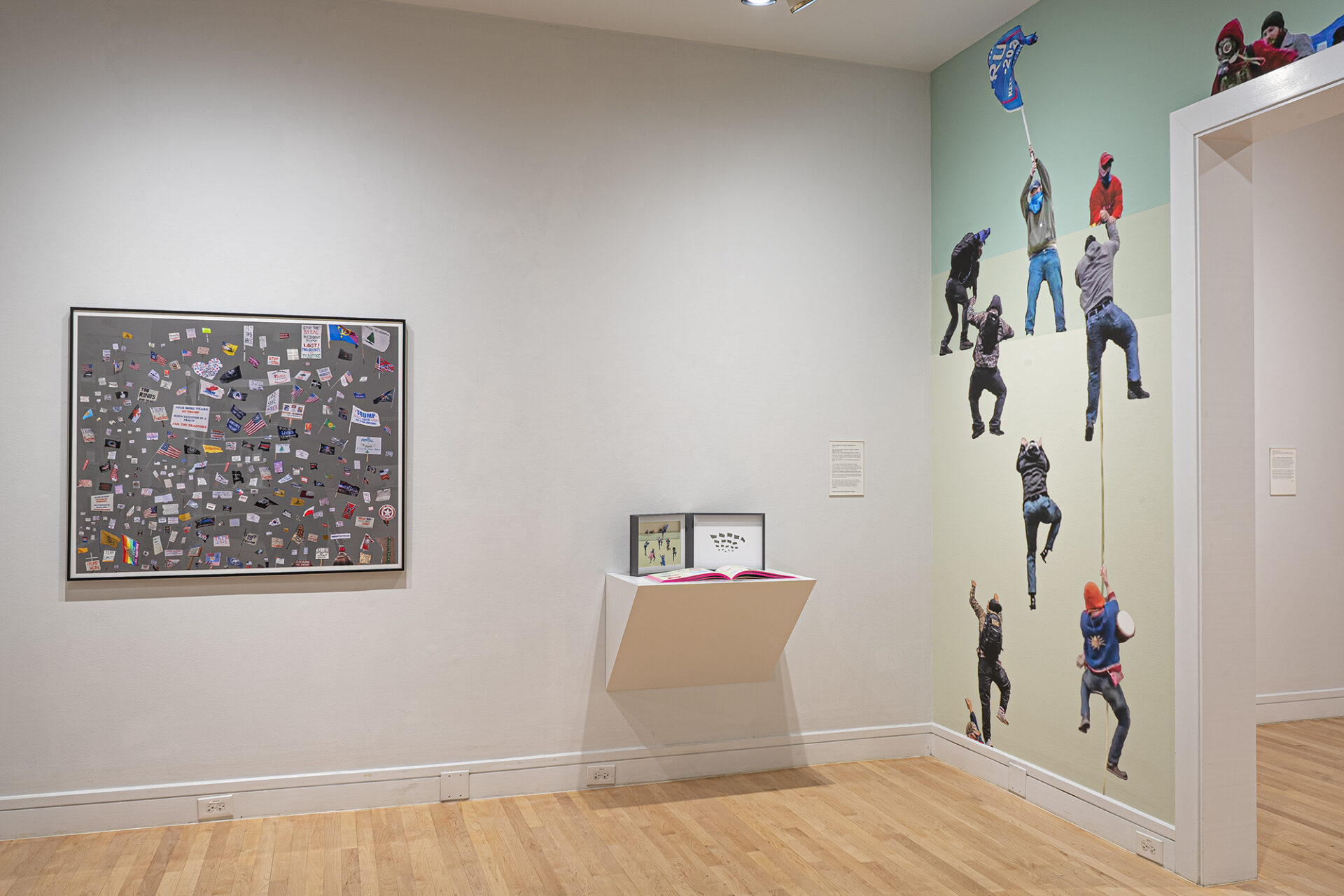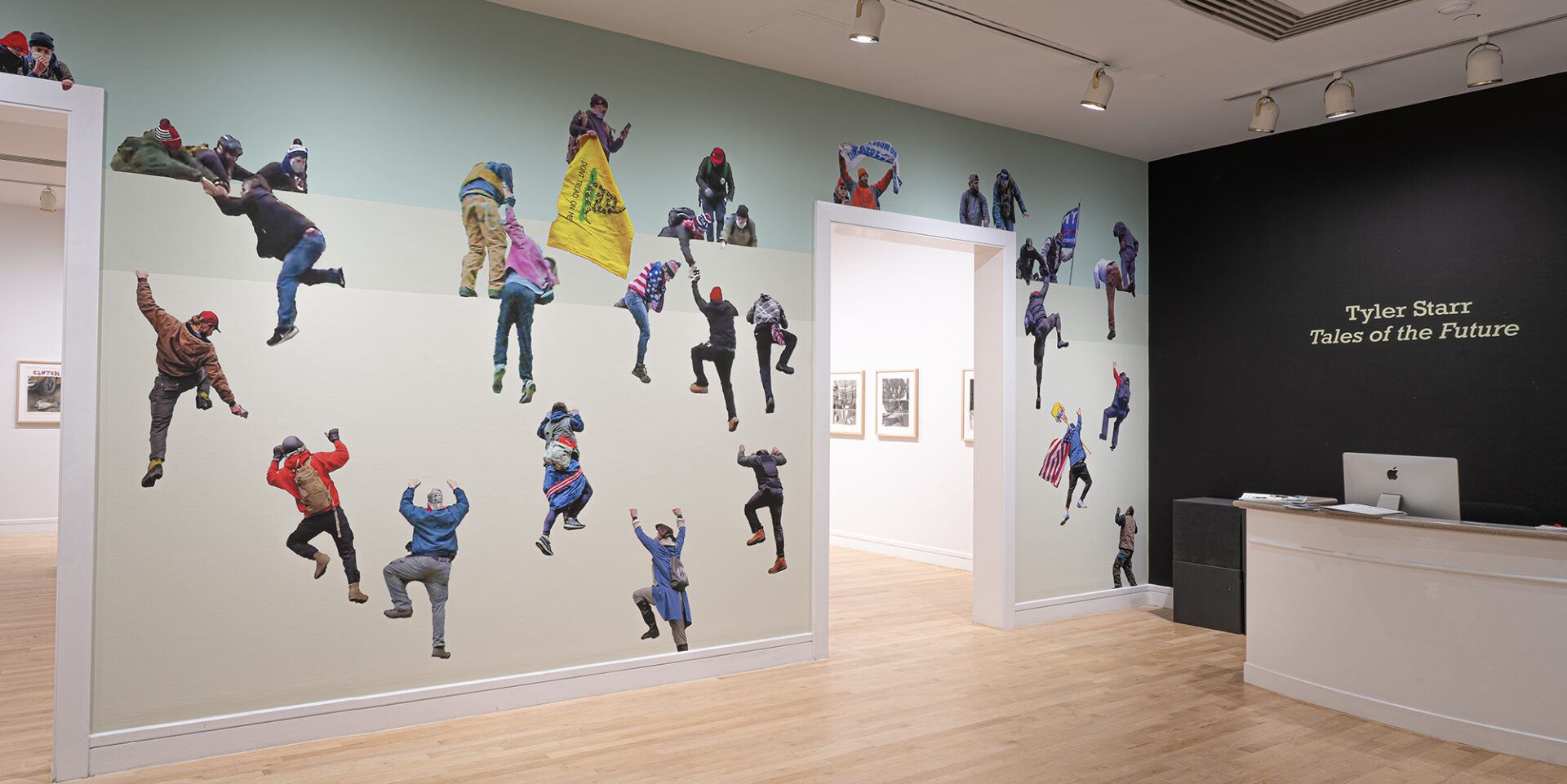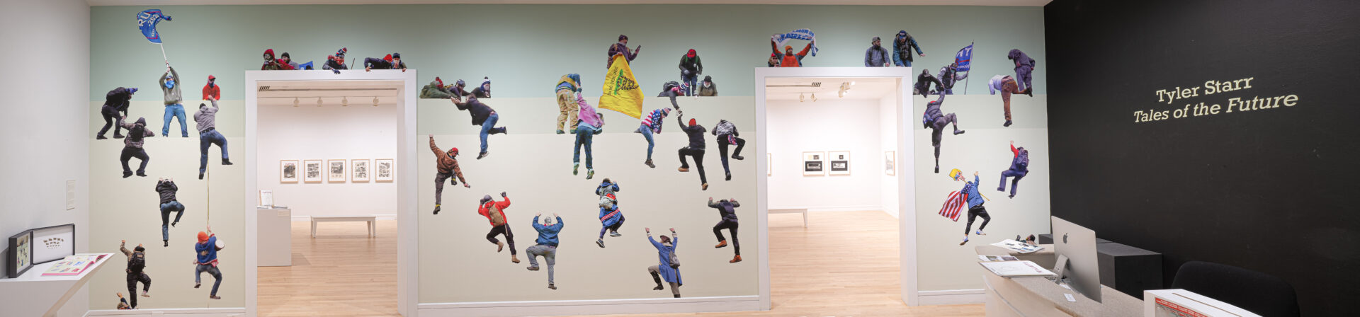 Combining research, direct observation, and poetic associations, Starr’s mixed media works and artists books utilize cross-references to better understand current social and political conundrums. Tales of the Future features two murals, a new comic book as well as two artist books, Flags, Placards, and Illicit Climbers of the Capitol Insurrection (January 6, 2021); Bank Tellers of America versus The Aryan Republican Army (1992-1996)