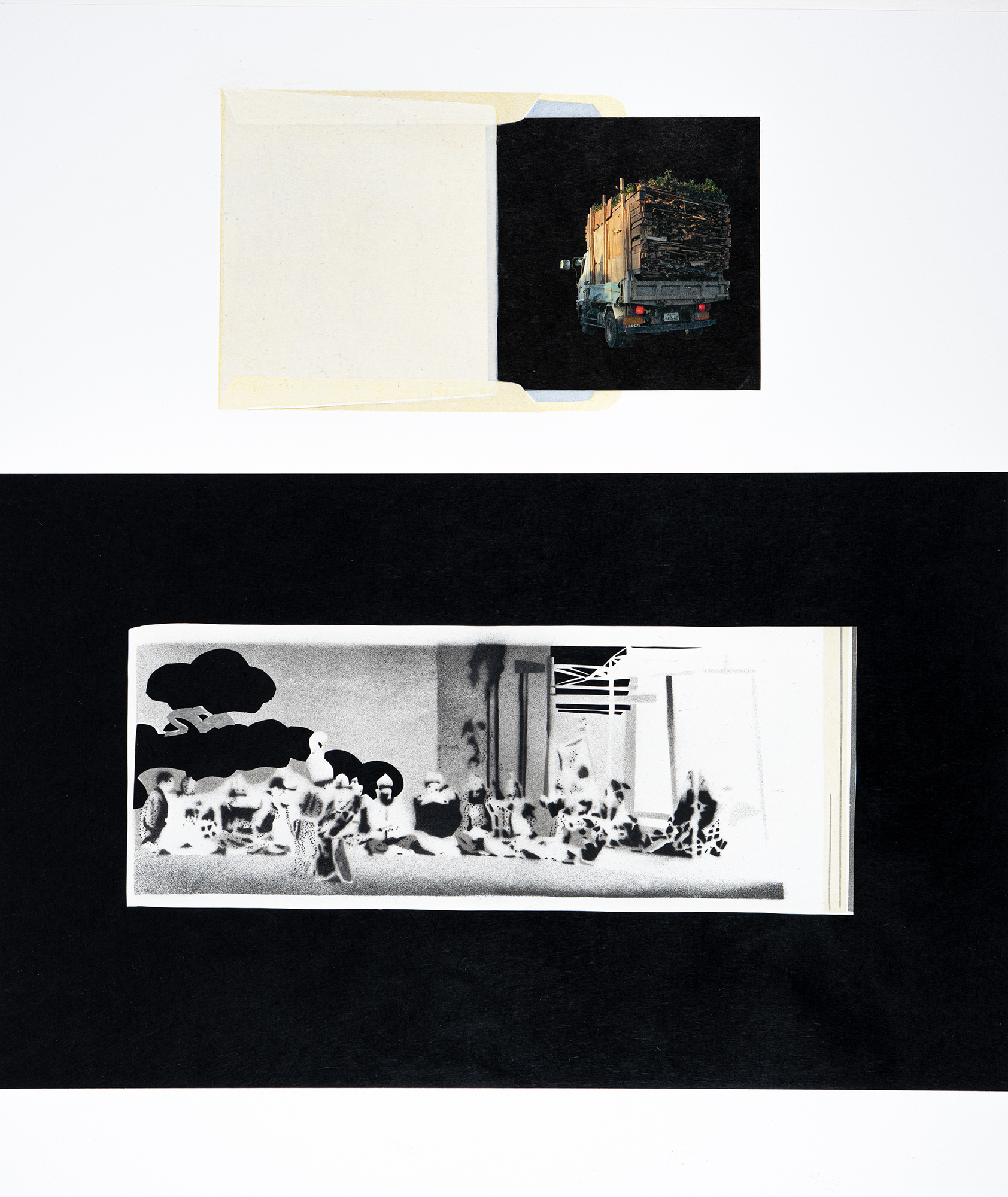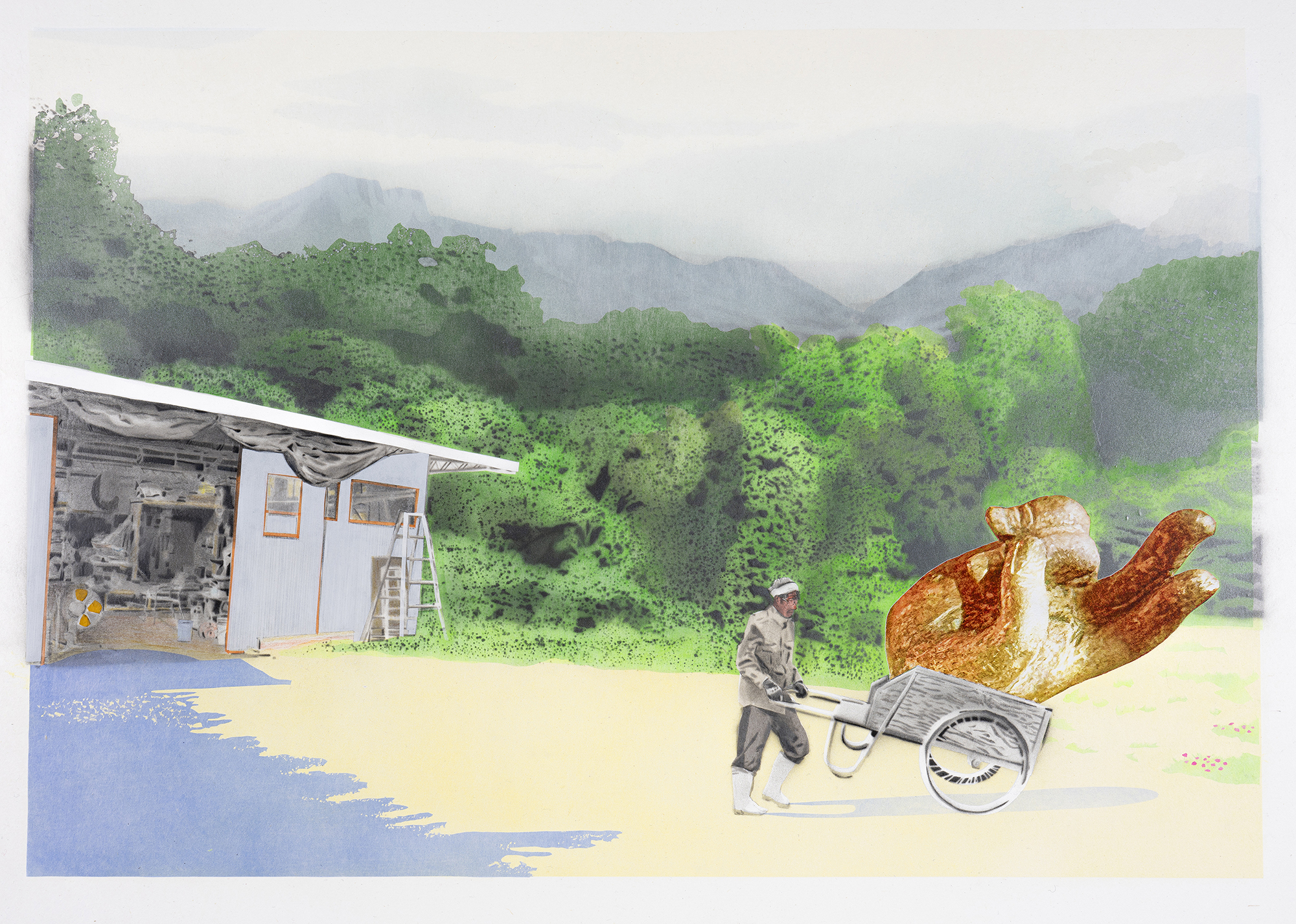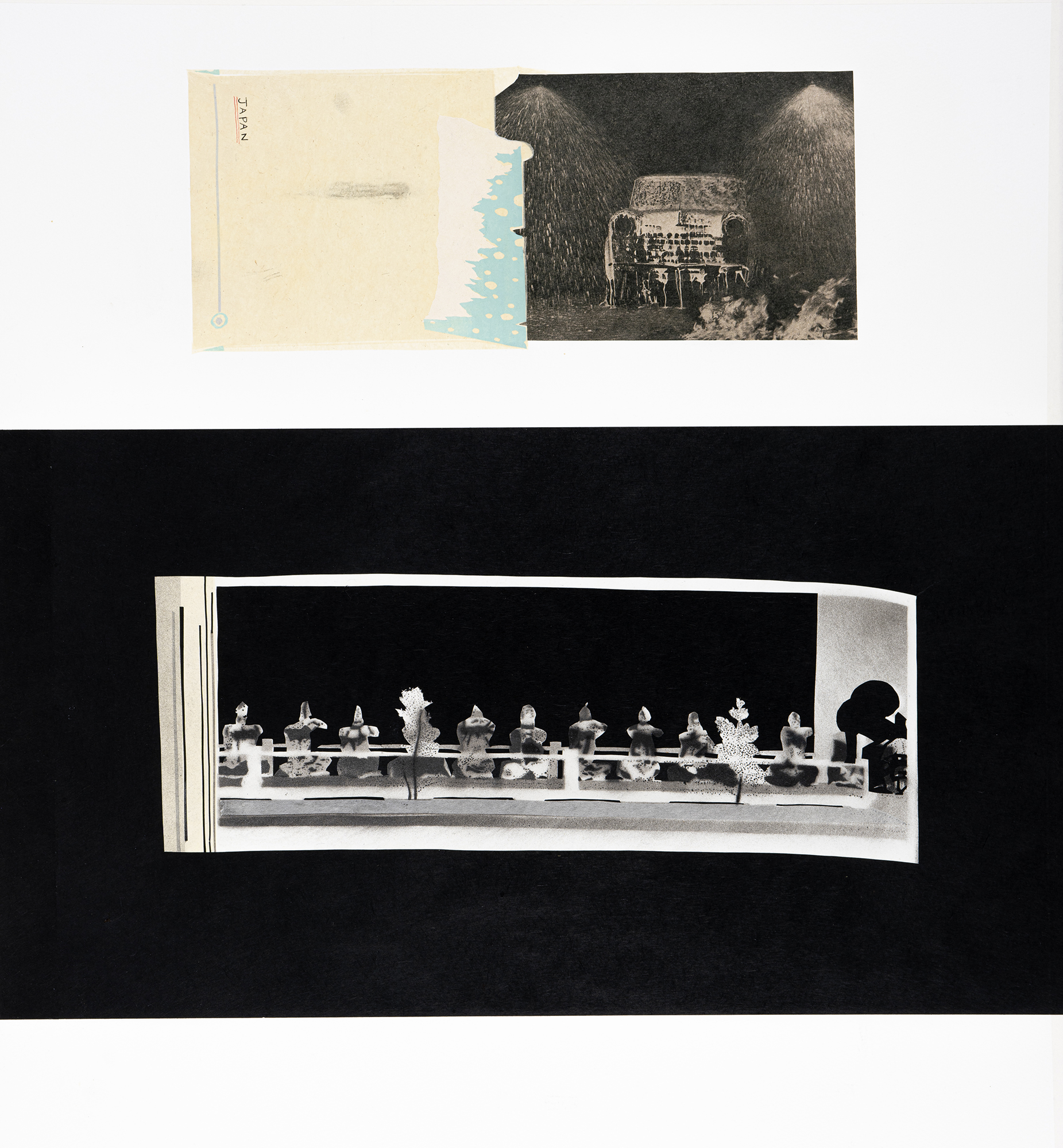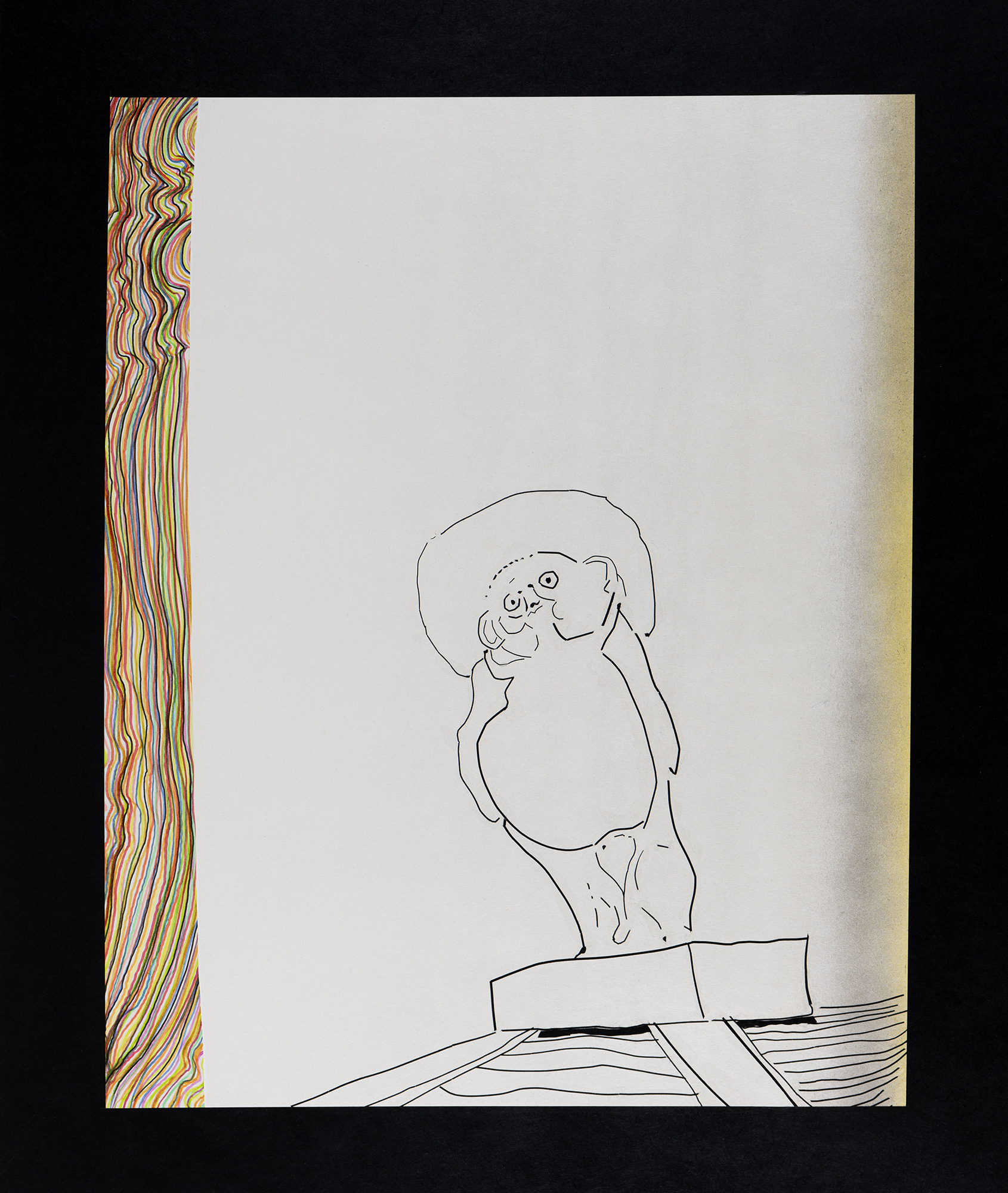 Graphite, lacquer spray paint, felt tip pen, gampi paper, gouache on Somerset Satin,