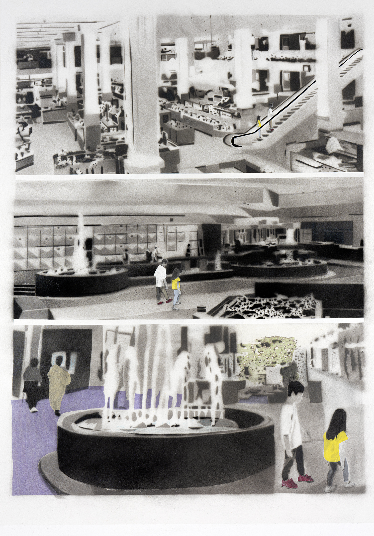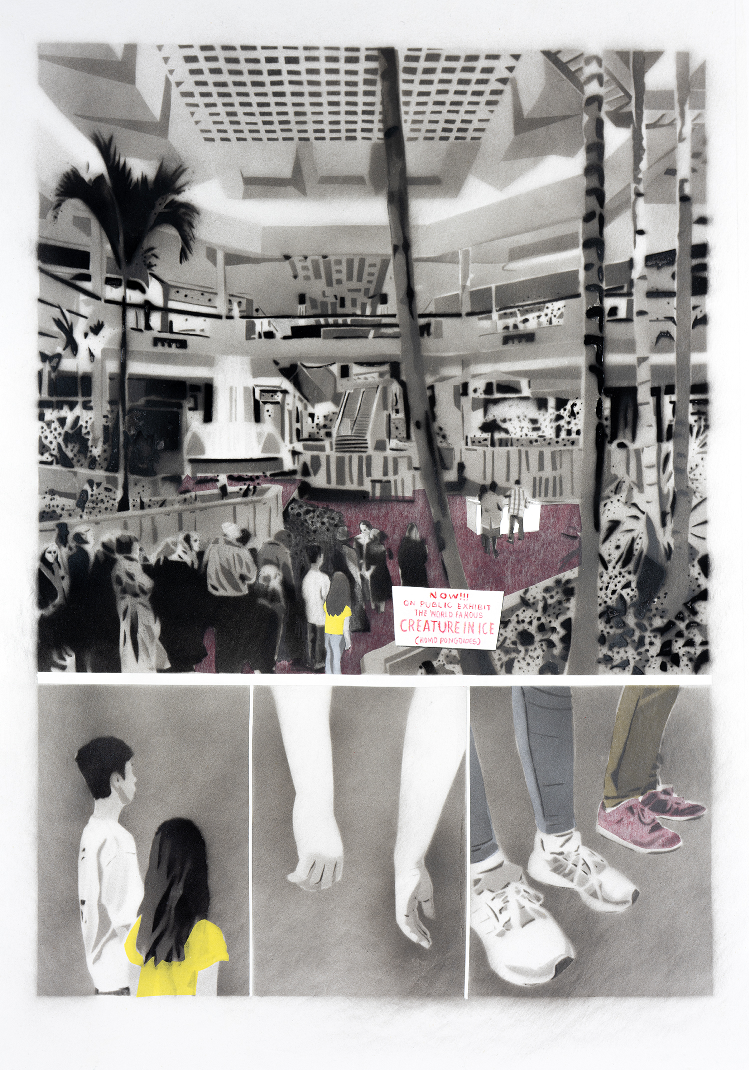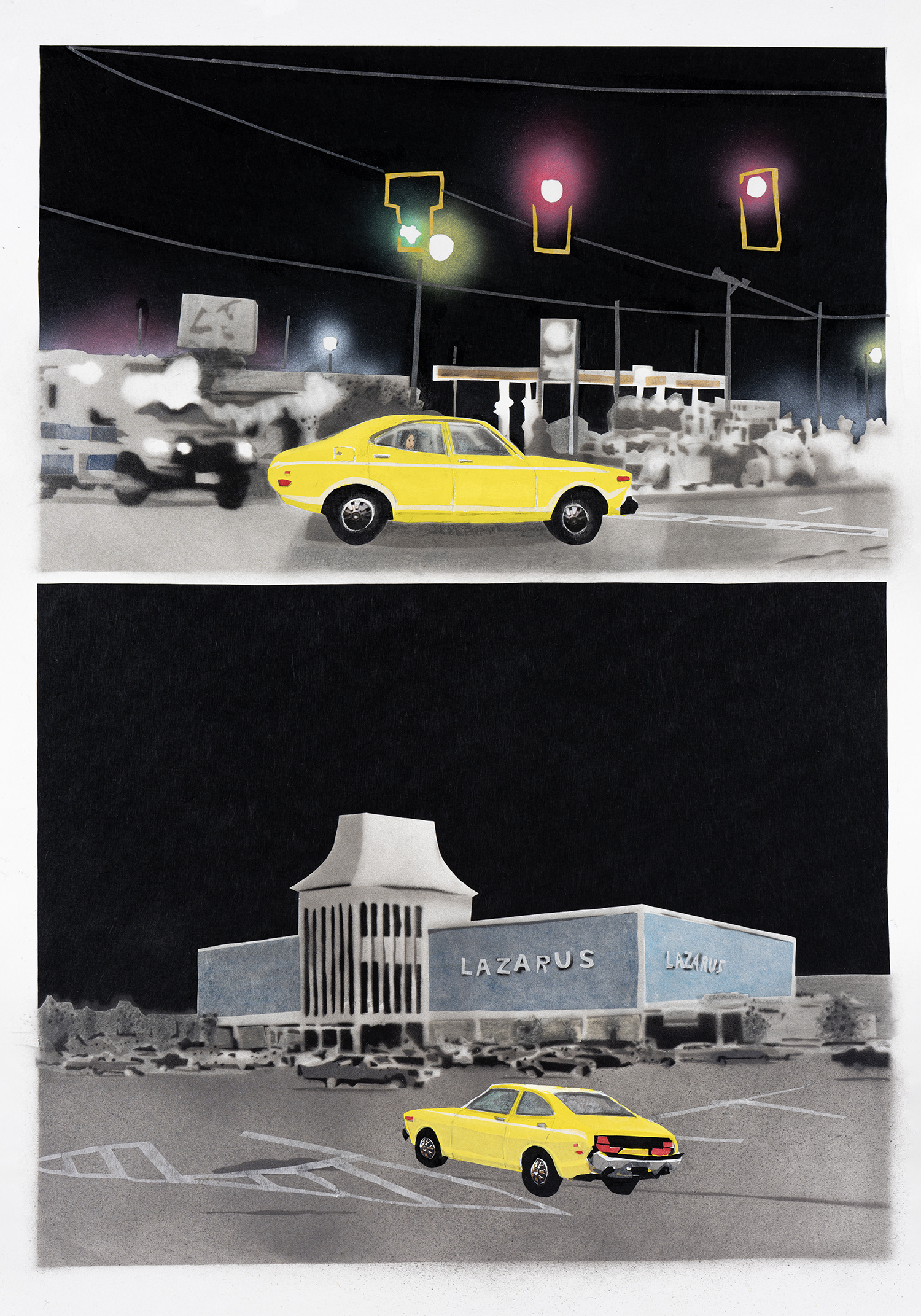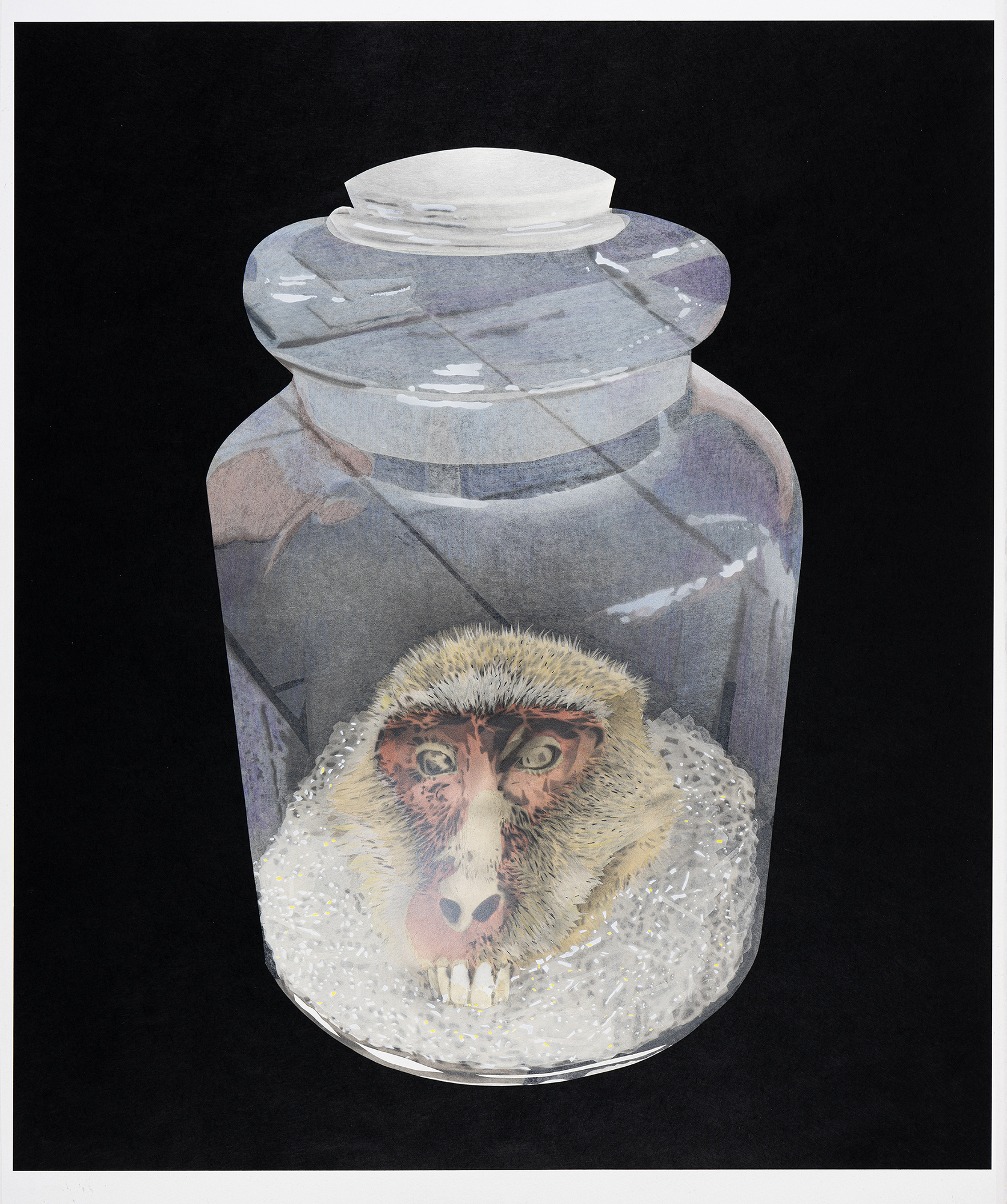 Graphite, lacquer spray paint, felt tip pen, gampi paper, gouache on Somerset Satin,